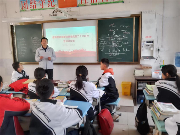 宣講中,杏花營農(nóng)場宣講團成員王英杰緊扣黨的二十大報告主題,以高度的政治站位、準(zhǔn)確的理解把握、青少年們通俗易懂的語言、喜聞樂見的方式方法,帶領(lǐng)同學(xué)們回顧了我們黨和國家過去五年取得的重大成就,并以案例的形式給同學(xué)們講述了發(fā)生在身邊的變化,帶領(lǐng)同學(xué)們深入學(xué)習(xí)黨的二十大精神,勉勵同學(xué)們深刻領(lǐng)悟、全面把握黨的二十大報告, 將個人成長主動融入黨和國家事業(yè)發(fā)展中,讓青春在全面建設(shè)社會主義現(xiàn)代化國家的火熱實踐中綻放絢麗之花。