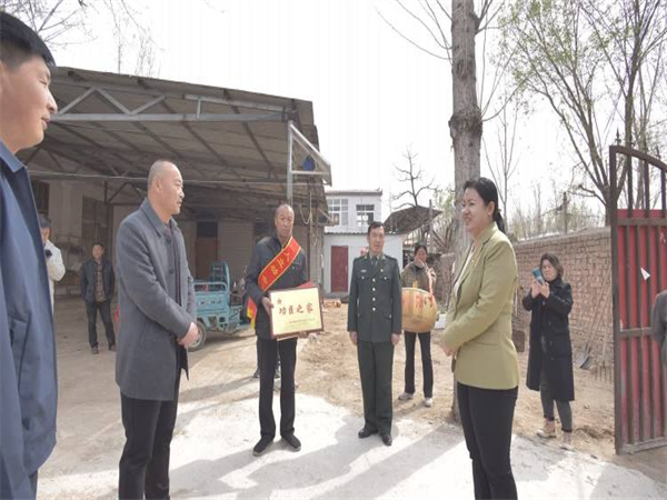 喜報(bào)送上門 擁軍暖人心---開封市示范區(qū)杏花營農(nóng)場(chǎng)為榮立“三等功”現(xiàn)役軍人家庭送喜報(bào)