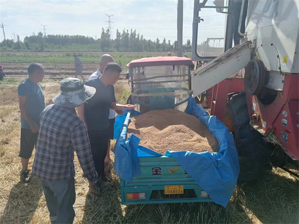 統(tǒng)籌協(xié)調(diào),強(qiáng)化指導(dǎo)服務(wù)。街道農(nóng)業(yè)中心保持人員隨時在崗,及時提供相關(guān)服務(wù),深入田間地頭,指導(dǎo)開展小麥搶收。積極組織人力,協(xié)調(diào)現(xiàn)有收割機(jī),人機(jī)不停,全力保障小麥搶收需求。同時,指導(dǎo)村民時刻關(guān)注天氣變化,及時翻晾未烘干小麥,防止直接堆積造成發(fā)熱霉變。