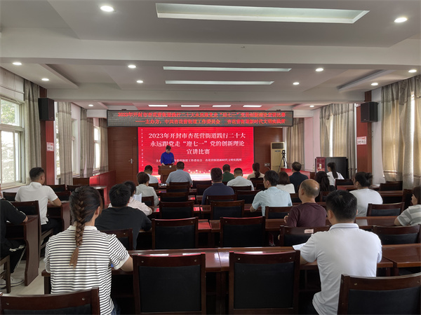 中新河南網(wǎng)6月30日電:為持續(xù)深入學習宣傳貫徹黨的二十大精神,進一步激勵和引領新時代黨員干部不忘初心、牢記使命,踔厲奮發(fā)、勇毅前行,提升黨員干部凝聚力和向心力。6月30日下午,開封市示范區(qū)杏花營街道舉辦踐行二十大永遠跟黨走“迎七一”黨的創(chuàng)新理論宣講比賽。街道有關(guān)領導、站所長、參賽選手30余人參加活動。