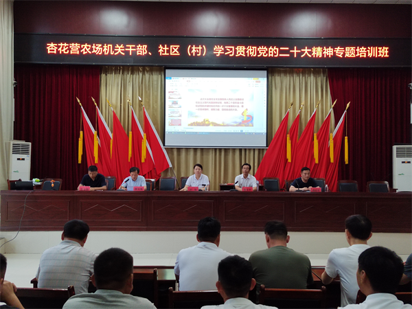 中新河南網(wǎng)7月25日電:開封市示范區(qū)杏花營農(nóng)場黨委堅(jiān)持把學(xué)習(xí)好、宣傳好、貫徹好、落實(shí)好黨的二十大精神作為首要政治任務(wù)來抓,采取集中授課、專題學(xué)習(xí)、個人自學(xué)、演講比賽等多種形式,深入學(xué)習(xí)領(lǐng)會黨的二十大精神,在全場黨員干部群眾中不斷掀起學(xué)習(xí)宣傳貫徹?zé)岢,全力確保黨的二十大精神落到實(shí)處、見到實(shí)效。