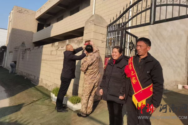 中新河南網(wǎng)12月17日電:為弘揚(yáng)擁軍優(yōu)屬、擁政愛(ài)民的優(yōu)良傳統(tǒng),營(yíng)造“一人參軍,全家光榮”的濃厚社會(huì)氛圍,2025年12月17日上午,開(kāi)封市示范區(qū)杏花營(yíng)農(nóng)場(chǎng)退役軍人服務(wù)站聯(lián)合場(chǎng)武裝部走進(jìn)秋季入伍新兵家中,親手懸掛“光榮之家”牌匾,用實(shí)際行動(dòng)向他們送去黨和政府的關(guān)懷和敬意。