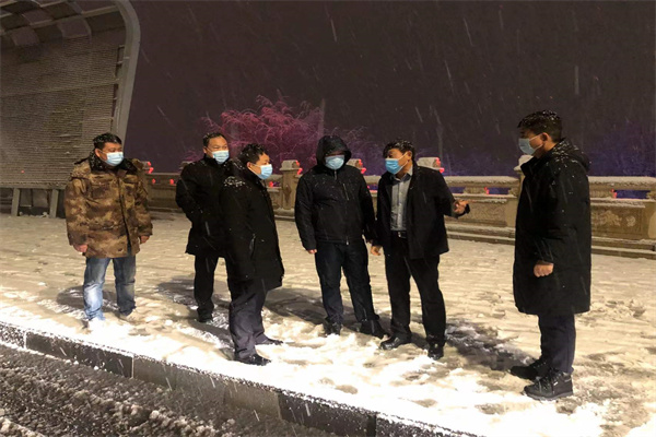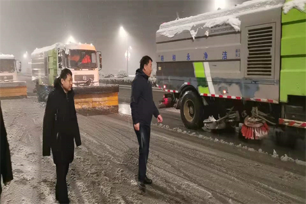示范區(qū)管委會領(lǐng)導岳朝祥現(xiàn)場查看雨雪惡劣天氣處置情況,對除雪應對機制提出指導意見,示范區(qū)城管局局長馬勝偉、副局長焦俊青、辦公室主任兼環(huán)衛(wèi)處負責人李勇參加。