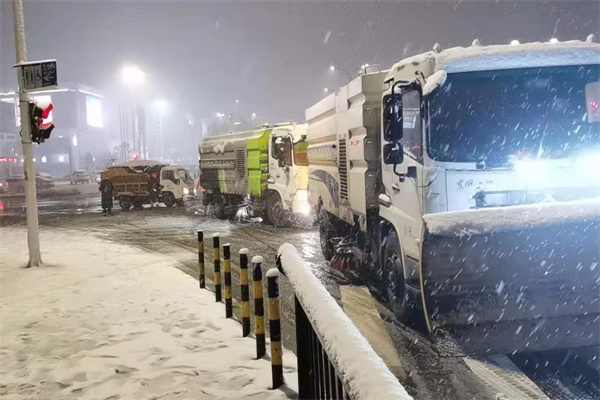 示范區(qū)城管局局長馬勝偉前往一線,現(xiàn)場召開清雪除冰部署會。安排工作人員以橋梁、涵洞、十字路口、公交站亭等為重點區(qū)域,按照“見路面、見道線、見路邊石”的標準,依次向各點位周邊推進清雪,撒布融雪劑,并及時清理人行道、慢車道積雪,做到即下即清。