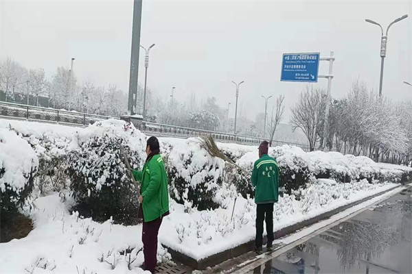 示范區(qū)城管局園林處積極行動清理積雪 防止樹木倒伏斷枝