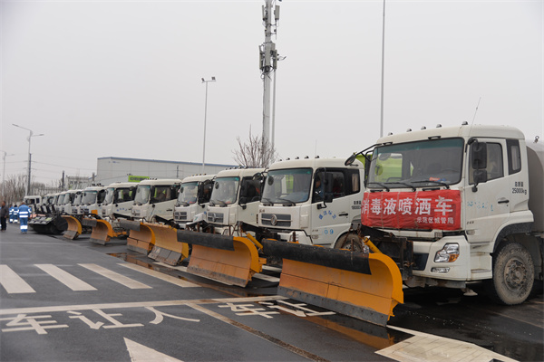 完成對(duì)新設(shè)備的調(diào)試及原有除雪機(jī)械的維修保養(yǎng)。做好應(yīng)急設(shè)備和物資的儲(chǔ)備,全面檢測各類機(jī)械設(shè)備。共準(zhǔn)備推雪板34臺(tái)、雪滾車3臺(tái)、撒布機(jī)12臺(tái)、融雪車6臺(tái)、融雪劑1000余噸、鐵鍬1000余把、掃帚1000余把,環(huán)衛(wèi)工人1200余人隨時(shí)待命。