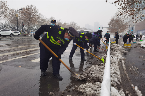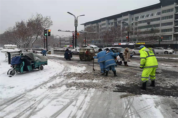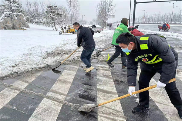 開(kāi)封市示范區(qū)城管局出動(dòng)1900余人連夜清雪除冰