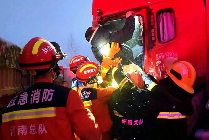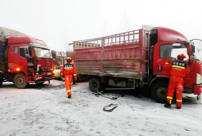 本網(wǎng)訊(張培 姚浩瀚)2022年12月29日05時49分,許昌市東城區(qū)消防救援大隊接到群眾報警稱:許昌東高速口向東新107國道附近多輛貨車發(fā)生車禍,有人員被困。