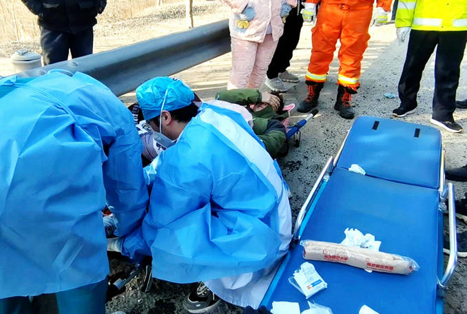 到達現(xiàn)場后,救援人員發(fā)現(xiàn):一輛渣土車與一輛半掛車發(fā)生追尾,因碰撞沖擊導(dǎo)致渣土車駕駛室嚴重變形,駕駛員卡在方向盤與座位之間無法脫困。