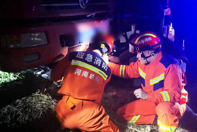河南許昌:貨車與三輪車相撞一人被困 消防醫(yī)護(hù)聯(lián)手成功實(shí)施救援