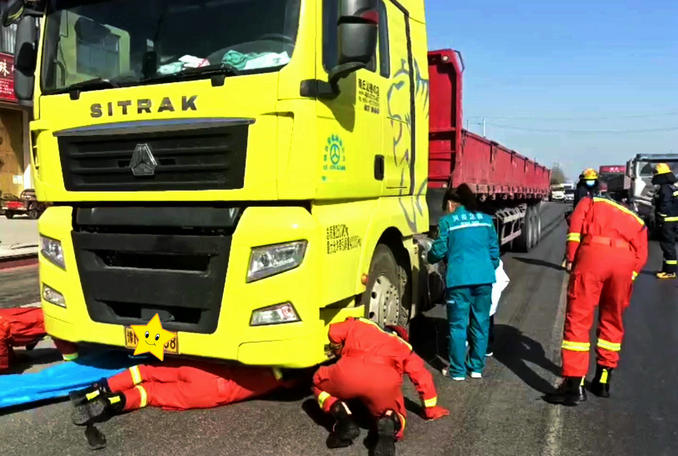 河南長葛:貨車轉(zhuǎn)彎導(dǎo)致老人被困車底 消防隊(duì)員緊急趕赴處置救援
