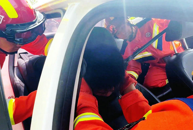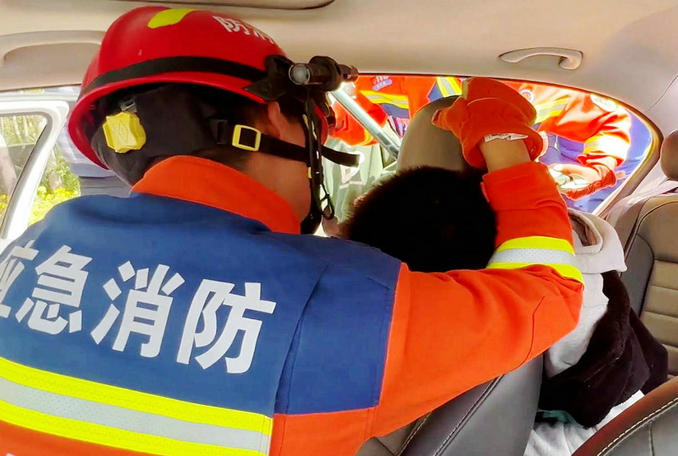 河南許昌:小男孩頭部被卡副駕駛座椅 消防隊(duì)員緊急趕赴破拆救援