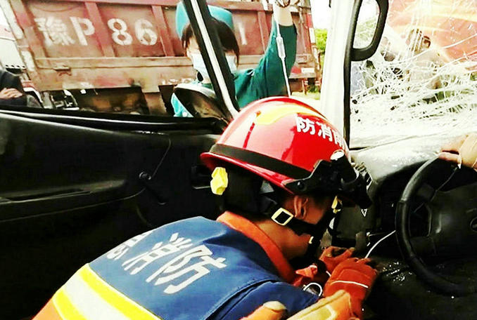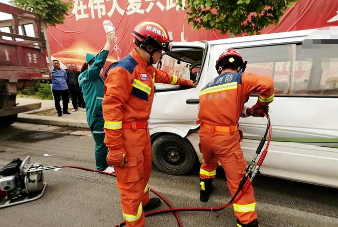 河南長(zhǎng)葛:面包車追尾半掛車一人被困 消防隊(duì)員立即趕赴破拆救援