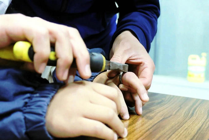 值班人員經(jīng)觀察,卡在男孩手指上的是一枚金屬材質(zhì)的戒指,由于被卡時(shí)間較長(zhǎng),男孩的手指已經(jīng)開始出現(xiàn)紅腫的現(xiàn)象。