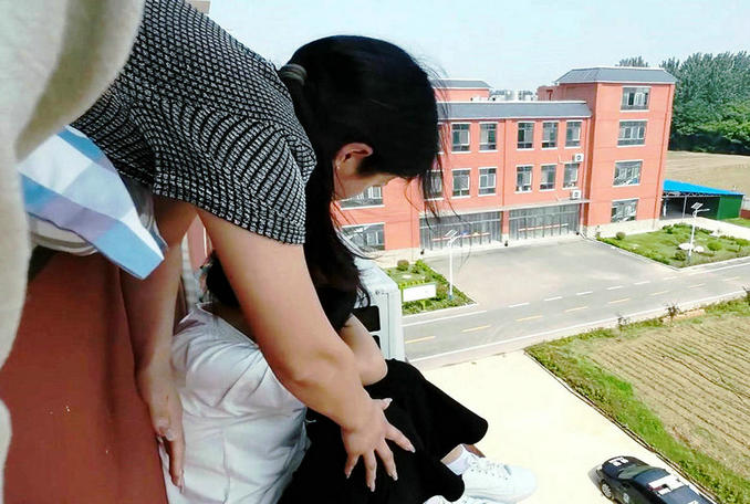 河南鄢陵:高中女生一時沖動意欲跳樓 消防隊員火速趕赴現(xiàn)場救援