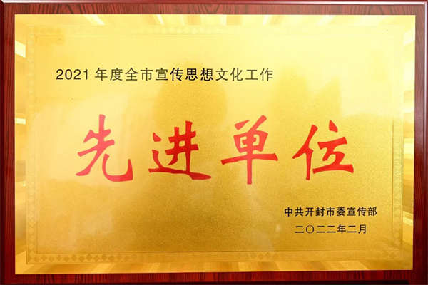 開封市中心醫(yī)院榮獲2021年度全市宣傳思想文化工作先進單位