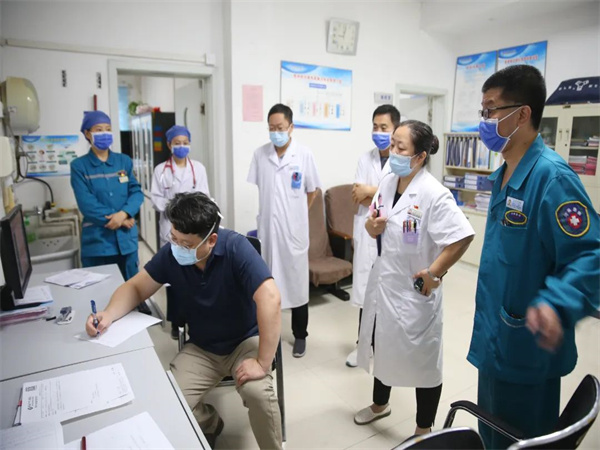 中新河南網(wǎng)7月22日電:7月22日,由河南省醫(yī)學會急診分會主任委員秦歷杰主任為組長的河南省創(chuàng)傷質控中心專家組一行4人蒞臨開封市中心醫(yī)院,對創(chuàng)傷中心工作進行“回頭看”現(xiàn)場評價與指導。開封市中心醫(yī)院院長李華強、副院長錢偉軍陪同檢查。