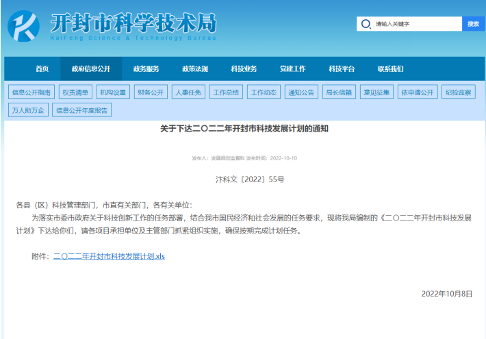 中新河南網(wǎng)10月13日電:近日,開封市科技局官網(wǎng)發(fā)布了《關(guān)于下達二〇二二年開封市科技發(fā)展計劃的通知》,公布了2022年度市級科技計劃項目。