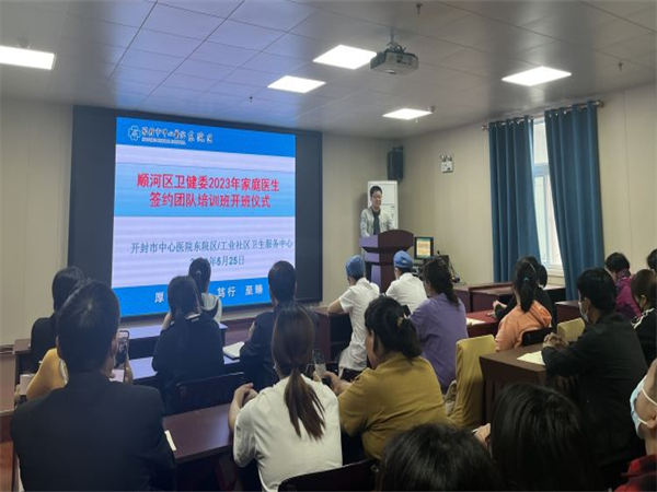 開班儀式上,開封市順河區(qū)衛(wèi)健委袁東生副主任對(duì)本期家庭醫(yī)生簽約服務(wù)培訓(xùn)班進(jìn)行了部署。他說,本期培訓(xùn)班的目的是為了進(jìn)一步加強(qiáng)家庭醫(yī)生隊(duì)伍建設(shè),不斷推進(jìn)家庭醫(yī)生簽約服務(wù)高質(zhì)量發(fā)展,豐富家庭醫(yī)生簽約服務(wù)內(nèi)容,做實(shí)做細(xì)家庭醫(yī)生簽約工作,進(jìn)一步提升簽約居民獲得感。他要求各醫(yī)療機(jī)構(gòu)正確解讀家醫(yī)簽約相關(guān)政策,注重家醫(yī)數(shù)據(jù)質(zhì)量,加大宣傳及考核力度,因地制宜,創(chuàng)新服務(wù),切實(shí)履約,不斷提升簽約居民滿意度。并就家醫(yī)簽約工作提出明確要求。袁東生副主任指出當(dāng)前我區(qū)家醫(yī)簽約服務(wù)工作質(zhì)效與群眾需求還有很大差距,各單位要高度重視家醫(yī)簽約工作,從“怎么看”和“怎么辦”兩方面下功夫;把具體任務(wù)分解到每一個(gè)家醫(yī)團(tuán)隊(duì)、每一名團(tuán)隊(duì)成員;要不斷拓展簽約服務(wù)渠道,結(jié)合群眾需求,走進(jìn)家庭,走到群眾身邊,不斷提升服務(wù)質(zhì)量。