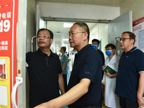 中新河南網(wǎng)6月21日電:端午假期將至,為確保醫(yī)院各項(xiàng)工作安全平穩(wěn)有序運(yùn)行,讓市民擁有一個(gè)和諧、安全、穩(wěn)定的就醫(yī)環(huán)境,6月21日上午,開(kāi)封市衛(wèi)健委黨組成員、開(kāi)封市中心醫(yī)院院長(zhǎng)李華強(qiáng)帶領(lǐng)院長(zhǎng)辦公室、醫(yī)務(wù)部、護(hù)理部、保衛(wèi)科、總務(wù)科、宣傳科、藥劑科等相關(guān)科室負(fù)責(zé)人,開(kāi)展節(jié)前行政大查房,對(duì)院內(nèi)重點(diǎn)區(qū)域、重點(diǎn)崗位進(jìn)行巡查與督導(dǎo)。