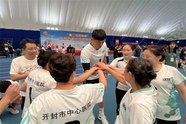 中新河南網(wǎng)9月19日電:為豐富全院職工精神文化生活,增強(qiáng)職工身體素質(zhì),提升醫(yī)院集體凝聚力,開(kāi)封市中心醫(yī)院工會(huì)積極組織職工參加開(kāi)封市職工氣排球比賽。本次比賽于9月15日開(kāi)賽,歷時(shí)三天,全市共有87支代表隊(duì)800余名優(yōu)秀選手參賽。該院男子隊(duì)、女子隊(duì)均派隊(duì)參賽,經(jīng)過(guò)一路過(guò)關(guān)斬將,該院男子隊(duì)榮獲開(kāi)封市職工氣排球比賽第三名的佳績(jī)。