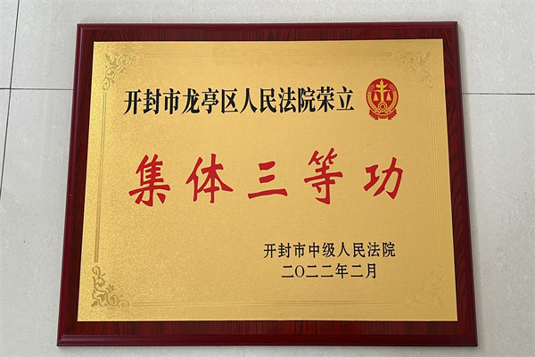 中新河南網(wǎng)3月9日電:近日,開封市中級(jí)人民法院表彰了2021年度全市法院先進(jìn)集體和先進(jìn)個(gè)人,開封市龍亭區(qū)人民法院榮獲集體三等功;刑事審判庭榮獲集體三等功;民事審判庭庭長(zhǎng)司文娟榮獲個(gè)人三等功;黨組成員、審判委員會(huì)專職委員代喬鵬,北郊人民法庭庭長(zhǎng)喬啟東,審判管理辦公室主任彭超峰獲個(gè)人嘉獎(jiǎng)。