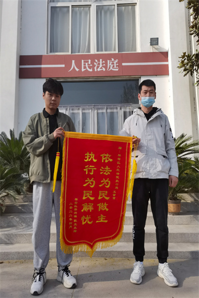 中新河南網(wǎng)4月20日電: 近日,申請執(zhí)行人耿某將寫有“依法為民做主,執(zhí)行為民解憂”的錦旗送到開封市祥符區(qū)人民法院執(zhí)行干警王童童手中,以此表達對祥符區(qū)法院執(zhí)行局高效執(zhí)行,切實維護申請執(zhí)行人利益的感謝。
