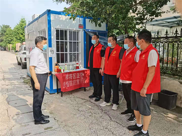中新河南網(wǎng)8月1日電:面對當(dāng)前疫情防控的嚴(yán)峻形勢,為更好落實(shí)疫情防控工作,根據(jù)上級統(tǒng)一安排部署,7月31日,開封市祥符區(qū)法院在分包小區(qū)-人行家屬院設(shè)立疫情防控卡點(diǎn)。院黨組副書記、副院長楊勁松到防控卡點(diǎn)督導(dǎo)疫情防控工作。