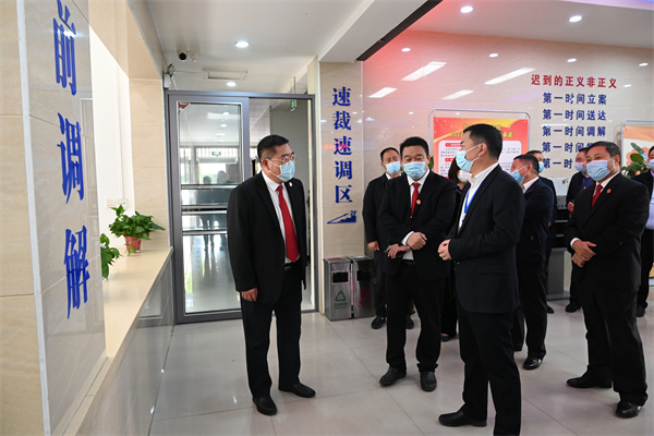 陶長生一行先后實地察看了訴訟服務中心、羈押室、體能訓練中心、圖書室、院史館、榮譽室等硬件設施建設,每到一處,代表們認真聽取相關人員的詳細介紹,并提出了許多中肯的意見和建議。
