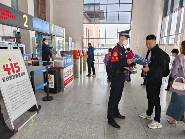 中新河南網(wǎng)4月16日電:在第八個“全民國家安全教育日”來臨之際,鄭州鐵路公安處開封北站派出所全面貫徹落實習(xí)近平總書記關(guān)于加強(qiáng)國家安全教育重要指示要求和關(guān)于總體國家安全觀重要論述,緊緊圍繞“貫徹總體國家安全觀,增強(qiáng)全民國家安全意識和素養(yǎng),夯實以新安全格局保障新發(fā)展格局的社會基礎(chǔ)”這一主題,組織民警深入站區(qū)采取多種形式宣傳國家安全知識,普及總體國家安全觀,引導(dǎo)廣大旅客增強(qiáng)法律意識、安全意識和責(zé)任意識。