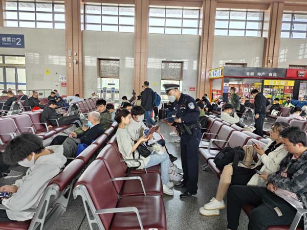 宣傳民警深入候車大廳,向候車旅客發(fā)放宣傳資料并進(jìn)行面對面講解,圍繞當(dāng)代國家安全組成領(lǐng)域、總體國家安全觀五大要素和五對關(guān)系、國家安全法律制度體系、公民有關(guān)維護(hù)國家安全的義務(wù)和權(quán)利、如何辨別危害國家安全的行為及舉報方式等內(nèi)容,上了一堂深入淺出的國家安全教育課,號召大家自覺抵制和防范危害國家安全犯罪行為。本次宣傳活動使廣大旅客充分了解國家安全的重要意義,切實增強(qiáng)其國家安全法治意識,進(jìn)一步打牢自覺維護(hù)國家安全的群眾基礎(chǔ),警民同心共筑國家安全的鋼鐵長城。(王安瀾)
