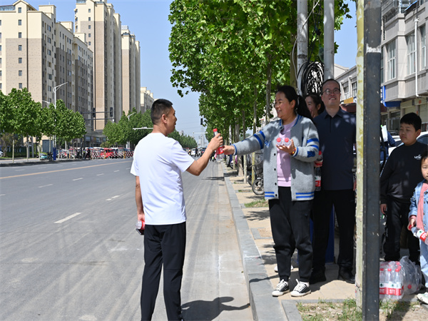 活動剛結(jié)束,法院干警李聰聰家屬和孩子早早等候在路邊,為辛苦一路走來的干警遞上礦泉水。喝上一口,尤其甘甜溫暖,為健步走構(gòu)筑一幅靚麗的風(fēng)景線。