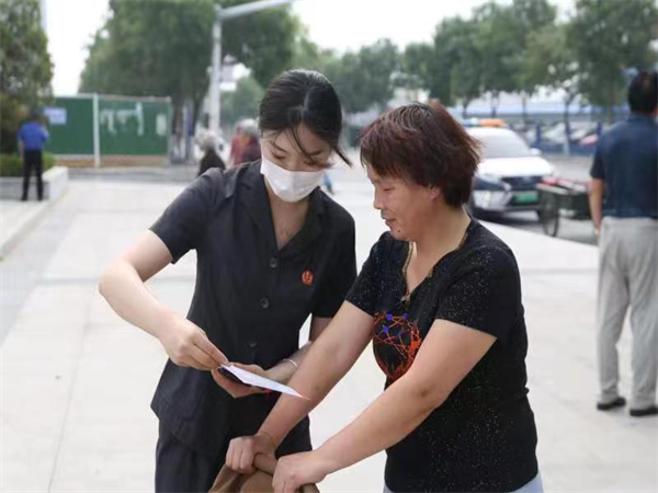 活動現(xiàn)場,干警通過懸掛宣傳橫幅、擺放圖文展板、發(fā)放宣傳資料等形式,全方位、多角度向群眾解讀《信訪工作條例》相關內容,進一步提升《信訪工作條例》知曉率和普及率。