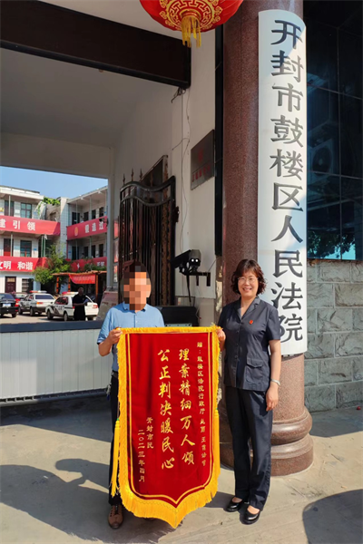 中新河南網(wǎng)6月14日電:鮮紅的錦旗,真誠的感謝,是人民群眾對法院工作最好的肯定!6月13日一早,當(dāng)事人王某將一面寫有“理案精細(xì)萬人頌,公正判決暖民心” 字樣的錦旗送到開封市鼓樓區(qū)人民法院趙麗法官手中,向她表達(dá)了內(nèi)心的感激之情。