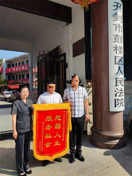 中新河南網(wǎng)6月19日電:近日,一起再審民間借貸糾紛案件的原告公司領導專程來到開封市鼓樓區(qū)人民法院,為王靜法官送來了一面錦旗以表感謝。錦旗上“慰藉人生 服務社會”八個燙金的大字在陽光下熠熠生輝。