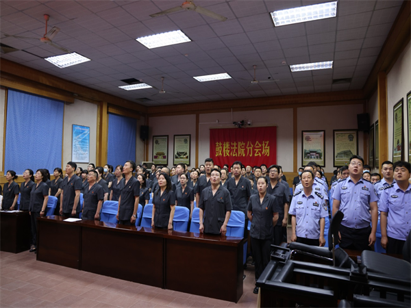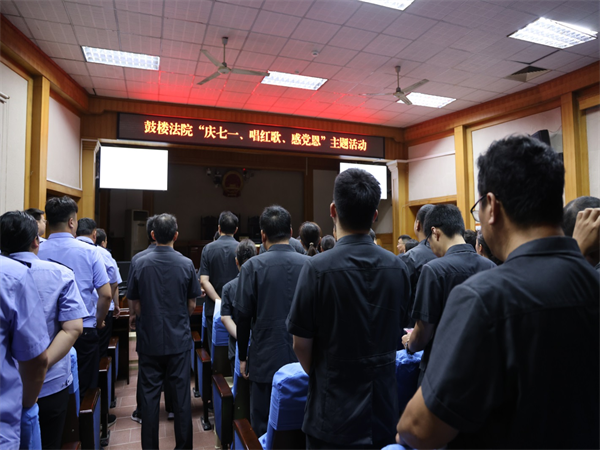 為慶祝中國(guó)共產(chǎn)黨成立102周年,深入學(xué)習(xí)貫徹黨的二十大精神,切實(shí)增強(qiáng)黨組織的凝聚力和戰(zhàn)斗力,開(kāi)封市鼓樓區(qū)人民法院近日舉辦“慶七一、唱紅歌、感黨恩”主題活動(dòng)。黨組書(shū)記、院長(zhǎng)李雅奇帶領(lǐng)班子成員及全體干警參加活動(dòng)。