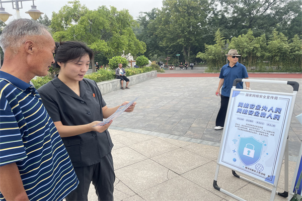 中新河南網(wǎng)9月11日電:9月11日上午,開(kāi)封市順河法院組織干警來(lái)到汴京公園開(kāi)展“網(wǎng)絡(luò)安全為人民、網(wǎng)絡(luò)安全靠人民”為主題的宣傳活動(dòng),旨在宣傳網(wǎng)絡(luò)安全理念,普及網(wǎng)絡(luò)安全知識(shí),提高全社會(huì)的網(wǎng)絡(luò)安全意識(shí)和防護(hù)技能,切實(shí)維護(hù)國(guó)家網(wǎng)絡(luò)安全和人民群眾合法利益。