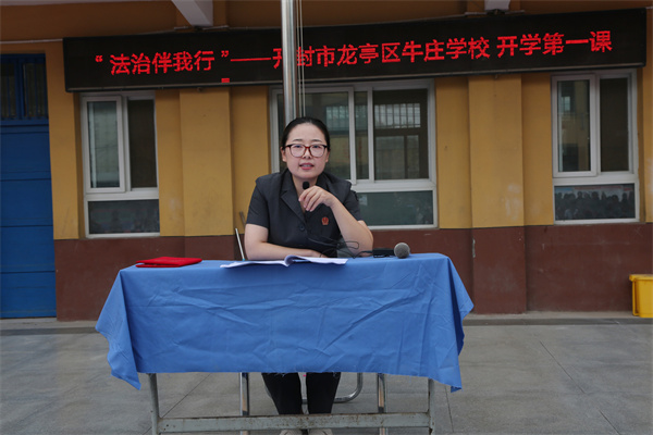 綜合審判庭庭長(zhǎng)萬(wàn)姍姍到牛莊學(xué)校以“法律伴我行,開(kāi)學(xué)第一課”為主題為學(xué)生們進(jìn)行普法講座。