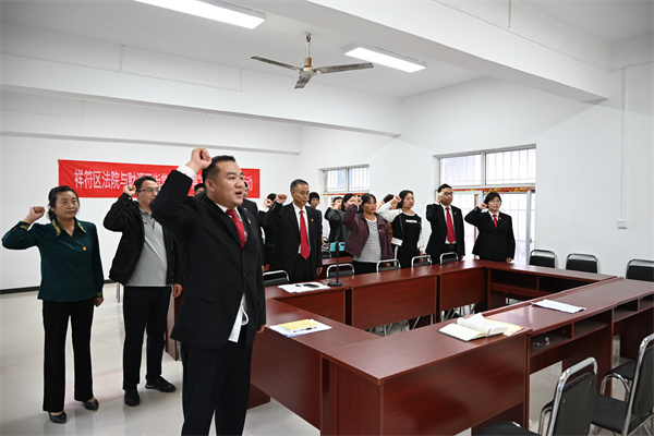 “我志愿加入中國(guó)共產(chǎn)黨,擁護(hù)黨的綱領(lǐng),遵守黨的章程,履行黨員義務(wù)……”在河南省開封市祥符區(qū)人民法院機(jī)關(guān)支部書記李建華的領(lǐng)誓下,黨員干警同社區(qū)黨員干部面對(duì)黨旗,高舉右手,莊嚴(yán)宣誓。院黨組成員、政治部主任趙麗為大家誦讀《習(xí)近平新時(shí)代中國(guó)特色社會(huì)主義思想專題摘編》選段,并為過(guò)政治生日的黨員贈(zèng)送政治生日賀卡并送上寄語(yǔ)。通過(guò)開展主題黨日聯(lián)過(guò),進(jìn)一步加強(qiáng)支部聯(lián)動(dòng)性,實(shí)現(xiàn)與社區(qū)黨組織資源共享,共建互補(bǔ),共同提升黨建工作水平。