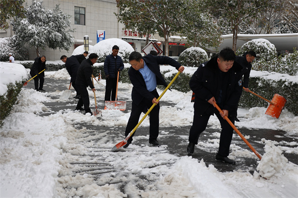 在院領(lǐng)導(dǎo)的倡議下,12月11日清晨,蘭考縣法院的很多干警冒著寒風(fēng),踏著積雪,早早地來到了單位,全力開展清雪防滑工作,以確保道路安全暢通,方便當(dāng)事人來院訴訟。