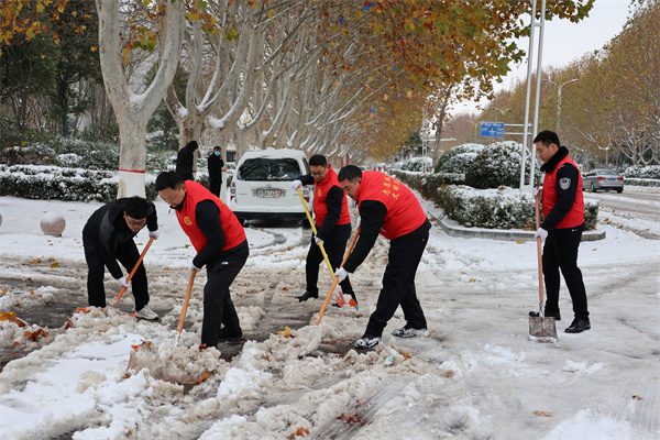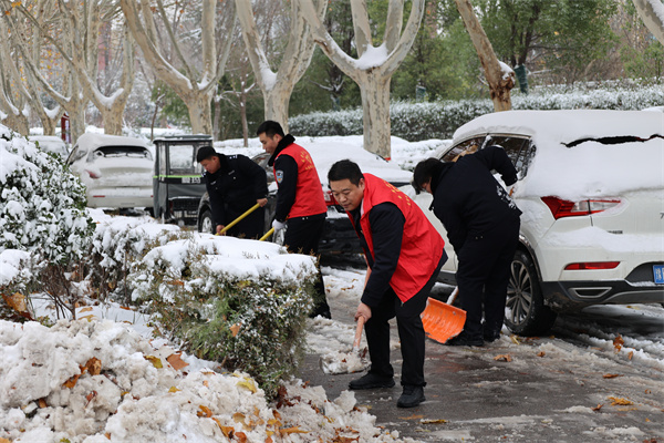 清雪現(xiàn)場,干警們不畏嚴(yán)寒、齊心協(xié)力,拿起鐵锨、雪鏟、掃帚,分工協(xié)作、相互配合,一片熱火朝天的景象。經(jīng)過連續(xù)奮戰(zhàn),不懈努力,法院機(jī)關(guān)及周邊道路積雪全部清理完畢,為過往行人和當(dāng)事人打通了安全出行的通道,讓雪后的冬天變得格外溫暖。