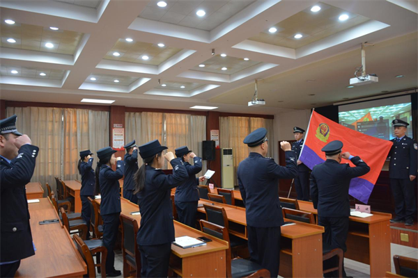 慶;顒(dòng)在莊嚴(yán)的國(guó)歌聲中拉開序幕,迎警旗、宣警誓、頒發(fā)警銜榮譽(yù)章和證書......既增強(qiáng)了司法警察隊(duì)伍的職業(yè)榮譽(yù)感,又提升了全省法院司法警察的凝聚力。隨后,胡道才院長(zhǎng)對(duì)全體司法警察致以節(jié)日的問候和祝福,并從筑牢政治忠誠(chéng)、履行職責(zé)使命、創(chuàng)新警務(wù)機(jī)制、嚴(yán)肅警風(fēng)警氣、強(qiáng)化組織領(lǐng)導(dǎo)等方面給新形勢(shì)、新任務(wù)下全省法院司法警察工作提出了明確要求。胡道才院長(zhǎng)強(qiáng)調(diào),全體司法警察要始終堅(jiān)持以習(xí)近平新時(shí)代中國(guó)特色社會(huì)主義思想為指導(dǎo),牢記初心,切實(shí)履行好黨和人民賦予新時(shí)代司法警察的職責(zé)使命,彰顯新時(shí)代司法警察新風(fēng)貌。