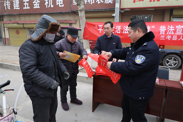 中新河南網(wǎng)1月31日電:人民法庭是為群眾排憂解難、定紛止?fàn)幍那把仃嚨,是參與社會(huì)綜合治理、服務(wù)全面推進(jìn)鄉(xiāng)村振興戰(zhàn)略的重要抓手。臨近春節(jié),為深化平安蘭考建設(shè),切實(shí)讓法治理念走進(jìn)基層。1月31日,蘭考縣法院考城法庭在考城鎮(zhèn)人員密集的社情民意中心附近開(kāi)展了“平安生活 法治相伴”戶外宣傳活動(dòng)。