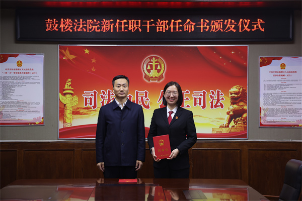 最后,根據(jù)《開封市鼓樓區(qū)人民代表大會(huì)常務(wù)委員會(huì)人事任免辦法》的規(guī)定,李雅奇同志為新任職干部頒發(fā)任命書。