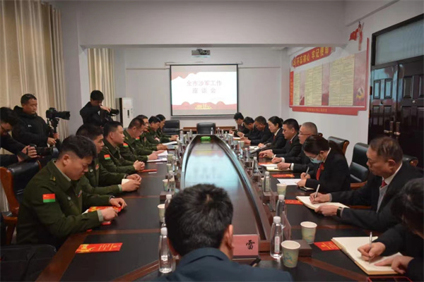 鄭州軍事法院院長(zhǎng)張偉強(qiáng)、中國(guó)人民解放軍某部隊(duì)政委汪海以及其他代表同志一行來(lái)訪,開(kāi)封軍分區(qū)政治委員徐彤,政治處主任江同山,開(kāi)封中院黨組成員、副院長(zhǎng)鄧強(qiáng),禹王臺(tái)區(qū)法院黨組書(shū)記、院長(zhǎng)呂建軍,禹王臺(tái)區(qū)人民武裝部政治委員胡金奎及開(kāi)封中院和禹王臺(tái)法院其他同志共同接待了部隊(duì)代表并舉行了座談會(huì)。