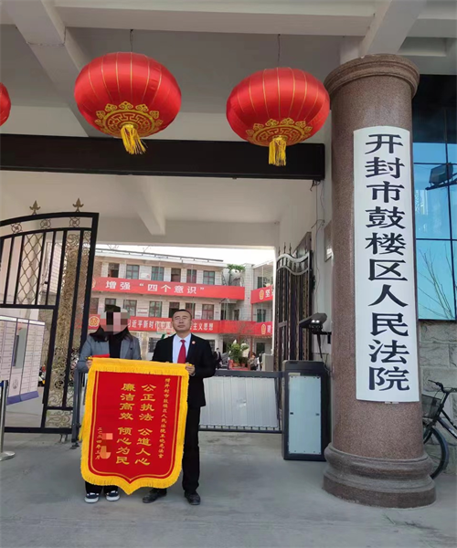中新河南網(wǎng)3月27日電:“能夠讓每一個當事人滿意,是每一位法院干警的最大成就。”近日,當事人曹某專程來到開封市鼓樓區(qū)人民法院,將一面錦旗送到執(zhí)行法官王曉光手中,這面錦旗的特殊之處就在于曹某是本案的被執(zhí)行人。