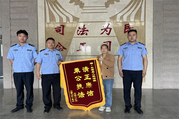 中新河南網(wǎng)5月7日電:5月6日上午,五一假期剛結(jié)束,朱某便將印有“清正廉潔 秉公執(zhí)法”的錦旗送至蘭考縣法院執(zhí)行干警呂光遠(yuǎn)手中,以表感謝之情。
