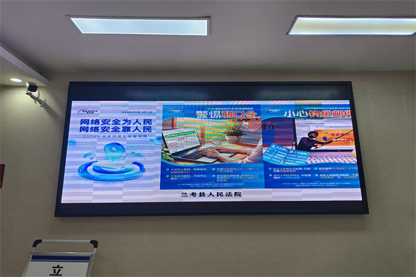 三是營造氛圍。利用官方網(wǎng)站、官方微博、官方微信等多媒體形式,積極推送網(wǎng)絡(luò)安全類信息,并運(yùn)用院內(nèi)顯示屏,不間斷播放網(wǎng)絡(luò)安全宣傳教育圖畫及標(biāo)語,提高前來法院辦事的群眾網(wǎng)絡(luò)安全意識(shí)。