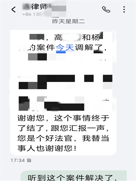 案件結(jié)束后,原告的代理律師專門向行政庭干警發(fā)來(lái)感謝短信,對(duì)他們?cè)诎讣幚磉^(guò)程中的專業(yè)精神和敬業(yè)態(tài)度給予高度評(píng)價(jià),稱贊其是真正為人民群眾排憂解難的好法官。