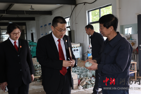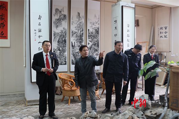 中新河南網(wǎng)3月13日電:3月13日下午,開封龍亭區(qū)人民法院北郊人民法庭庭長(zhǎng)萬朝陽與柳園口鄉(xiāng)牛莊社區(qū)支部委員趙青龍一行到開封市宋煌文化有限公司和東京藝術(shù)館開展普法宣傳活動(dòng),進(jìn)一步提升知識(shí)產(chǎn)權(quán)保護(hù)工作成效,護(hù)航企業(yè)高質(zhì)量發(fā)展。